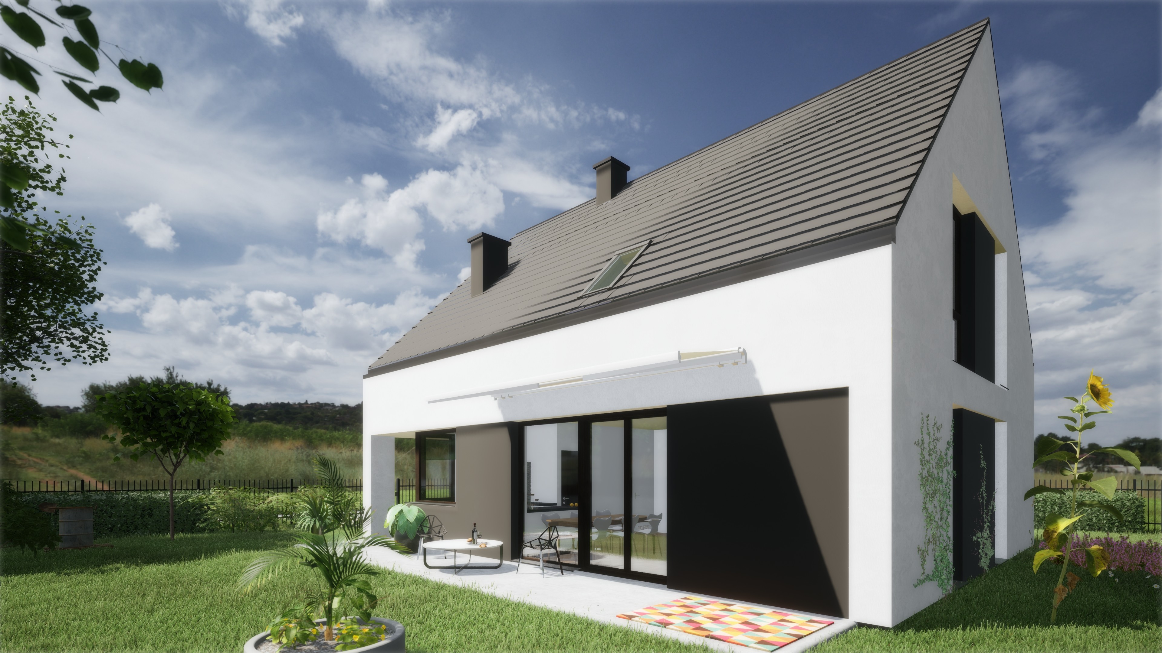 Dom o nowoczesnej architekturze, budowany z wysokiej jakości materiałów gwarantujących ekologiczne i energooszczędne użytkowanie. Budynek dostosowany na ewentualne przyszłe zastosowanie fotowoltaiki.